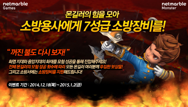 ... 또한 이번 캠페인에 참여한 모든 이용자에게는 참여 횟수에 따라 6성 몬스터 선택권, 5성 몬스터 뽑기권, 수정, 열쇠 등 다양한 게임 내 재화 아이템을 선물로 제공한다. 넷마블은 이번 캠페인과 더불어 상점에서 판매하는 ‘사랑나눔 선물상자’의 수익금 일부를 기부금으로 적립해