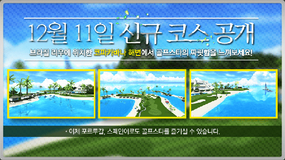 ... 더불어 회사 측은 대규모 업데이트도 진행했다. 브라질 리우의 해변을 배경으로 한 코스 Copa C. C를 추가하고, Bridgestone 클럽 및 클럽백, 겨울 의상 등 신규 아이템을 대거 선보였다