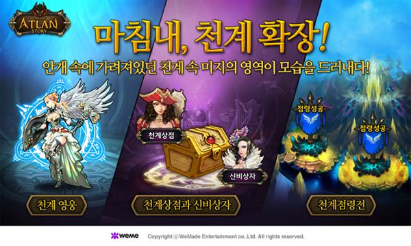 ... PVP가 진행되는'천계 점령전'은 기존의 '콜로세움' 전투와 달리 이용자들의 레벨에 따라 순차적으로 클리어 해 가는 방식으로 전투 승리 시 골드, 명성, 신석 획득과 함께 점령깃발을 세울 수 있다. 이외에도 '아틀란스토리 for Kakao'는 아틀란 대륙을 떠난 이용자들