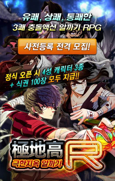 ... 극지고R은 네이버 인기 웹툰 격투기특성화사립고교 극지고를 기반으로 제작된 게임으로 극지고에 등장하는 주인공은 물론 주요 캐릭터, 웹툰 내에서 사용되는 스토리 그대로 게임에서 만날 수 있다. 특히 실제 웹툰 장면이 스토리모드를 통해 등장하기 때문에 스토리를 모르는 플레이어들도