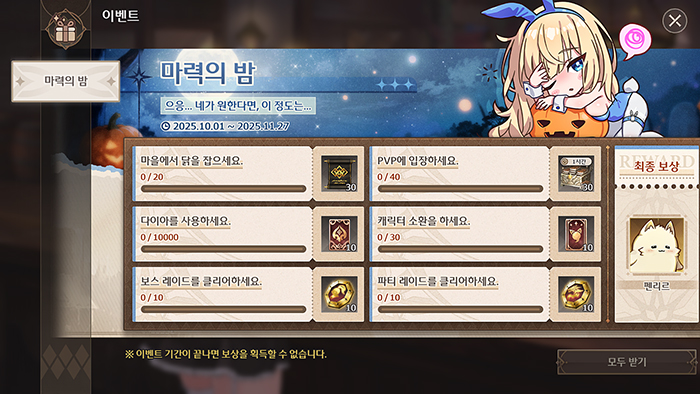 ... 이벤트 참여자를 대상으로 추첨을 통해 네이버페이 상품권을 증정한다. 설문 조사 이벤트도 진행한다. 해당 이벤트는 게임 내에서 메인 퀘스트 '새로운 희망: 집회소에 있는 밀러와 대화하기' 완료 시 설문 콘텐츠가 해금되며 팝업 바로
