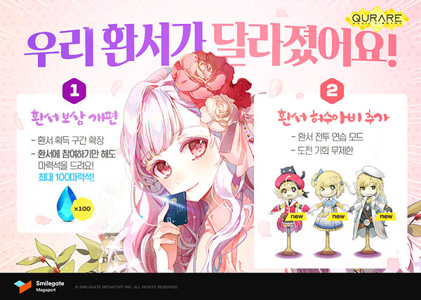 ... 이제 환서 전투를 통해 ‘환서 카드’를 획득 할 수 있는 유저구간이 상위 10%에서 상위 20%로 늘어나며 게임 내 재화인 ‘마력석’을 최대 100개까지 보상으로 지급한다. 또한, 새로 추가된 ‘환서 허수아비’모드에서 횟수 제한 없는 환서 전투 연습을 할 수 있다. 업데