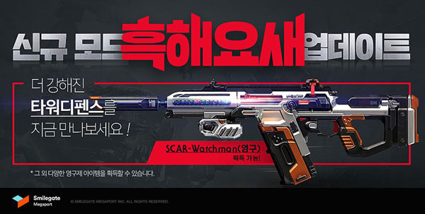 ... 스마일게이트는 흑해요새 업데이트를 기념한 이벤트도 마련했다. 이번 이벤트는 내달 15일까지 진행되며유저들의 누적 플레이 횟수에 따라 ‘SCAR-Watchman’ 부품과 기술포인트, ‘MG3-Legend Dragon(3일)’, 다이아 100개 등을 제공한다. 또한