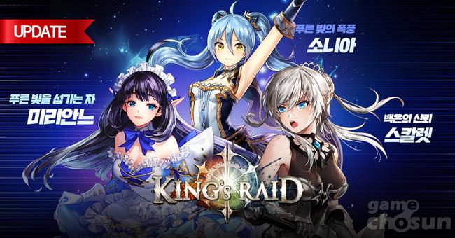 ... 이번 업데이트로 신규 영웅 3종과 신규 영웅 패키지, 2차 크리스마스 코스튬, 크리스마스 기념 특별 이벤트 등이 추가됐다. 먼저, 새롭게 '킹스레이드'에 등장한 영웅으로는 모험의 시작이 된 오르벨리아 왕국의 공주인 '백은의 신뢰 스칼렛'과 호문쿨루스인 '푸른빛의 폭풍