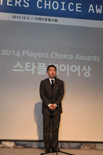 ... 이날 ‘2014 PCA’ 수상자로는 현역 선수들이 직접 뽑은 올해의 선수에 넥센 서건창 선수가 뽑혔으며, 올해의 신인선수상은 NC 박민우 선수, 재기선수상은 한화 윤규진 선수, 기량발전선수상은 SK 이재원 선수, 모범선수상은 삼성 진갑용 선수, 퓨처스 투수상은 KT 박세웅 선