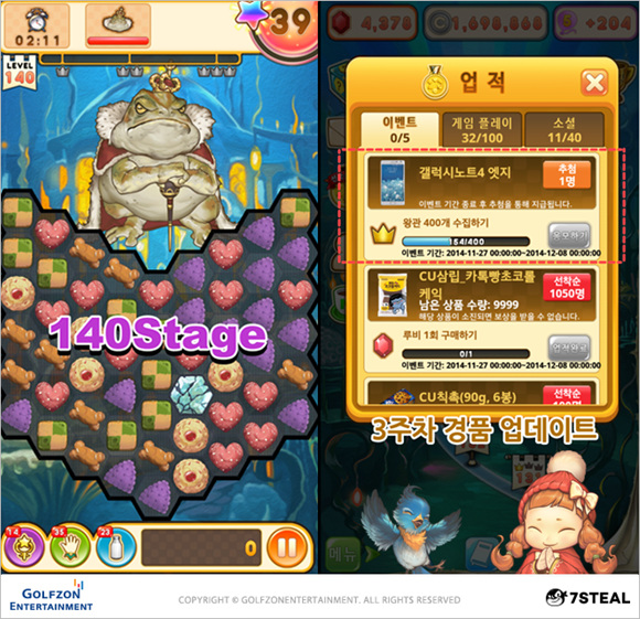 ... 차주 중 카카오게임 플랫폼을 통해 출시될 ‘장화신은고양이 for Kakao’는 불의의 사고로 주인을 잃은 귀여운 고양이들이 물고기, 대왕 개구리, 바위, 벽돌 등 다양한 장애물을 피하며 주인을 찾아가는 세로형 액션 점핑 모바일게임이다. 높이 올라가 점수를 다량 획득하는 것이