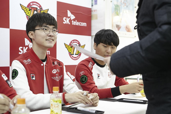 ... 행사장에는 SK텔레콤이 지난 20일까지 진행한 SK텔레콤 전용 스마트폰 대축제 프로모션을 통해 당첨된 100명의 팬들이 참여했다. T1 선수단은 궂은 날씨에도 불구하고 사인회를 찾아 준 팬들에게 일일이 다정한 인사를 건넸다는 후문이다. 사인회 시작 전 진행된 인터뷰에서 ‘롤드컵’