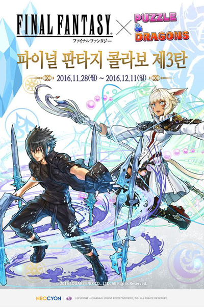 ... 게임 내 메일에서 사용하기 버튼을 누르면 ‘클라우드’와 ‘녹티스’등 대상 캐릭터 중 랜덤으로 1개를 획득할 수 있다. 또한, ‘야슈톨라, 녹티스, 티파’의 궁극진화가 추가되며, 일정별로 콜라보 에그에서 일부 캐릭터의 적중 확률이 대폭 상승된다. 콜라보 기간 중, 제 2탄까지에서