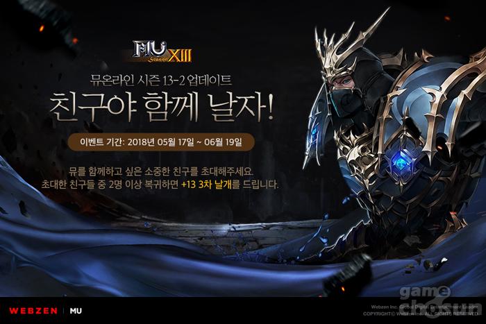 ...한편, 웹젠은 업데이트에 앞서 ‘The 즐거운 친구 초대’, ‘The 강한 경험치 상승’, ‘The 새로운 경험 예약’ 등 다양한 사전 이벤트를 시작한다. 우선 5월 17일 정기점검 이후부터 6월 19일까지 약 5주 간 친구 초대 이벤트를 진행한다. 이벤트 페이지에서 초대할 친구