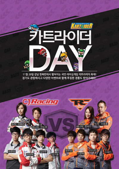 ... 또한 카트라이더 캐릭터인 배찌와 다오를 찾아 가위바위보 대결에서 승리한 분에게는 예쁜 배찌/다오 인형 또는 넥슨 캐시를 선물로 증정하는 특별한 이벤트도 마련되어 있다. 뿐만 아니라 현장 관람객 선착순 500명에게는 넥슨캐시, 골드카트기어3개, 프리즘기어3개가 제공된다. ‘