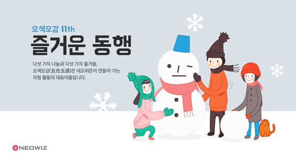 ... 특히 이번 '오색오감' 프로그램에서는 네오위즈 임직원과 지역아동센터의 아이들이 1일 짝궁이 되어 기업 탐방을 진행하고, 최고기술책임자 및 블레스 개발자의 의미 있는 강연을 들을 수 있는 견학 프로그램이 새롭게 마련됐다. 오색오감의 터줏대감 프로그램인 연탄 배달 역시 100명