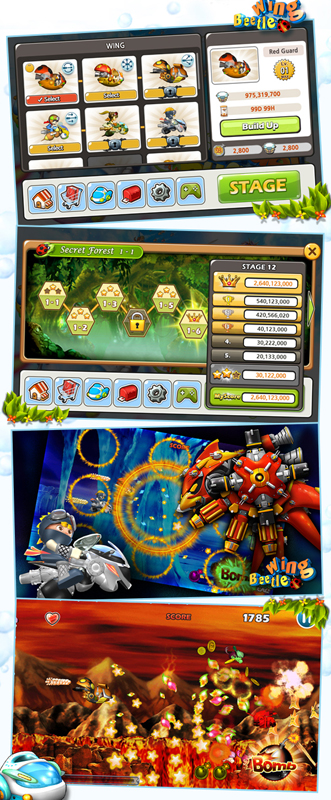 ... 100개의 스테이지를 클리어 하면서 유저는 서로간의 경쟁을 펼치게된다. 구글플레이로 새롭게 출시하는 비틀윙은 구글 피쳐드(Featured)의 에디터가 엄선한 '금주의 Play 추천 게임'으로 선정된 바 있다. 비틀윙은 횡스크롤 비행슈팅게임이었던 동명의 원작을 모바일로 재해