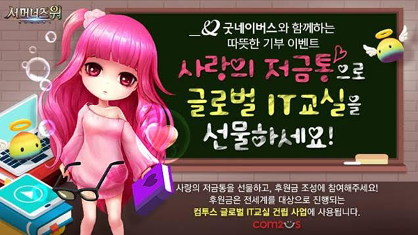 ...컴투스는 ‘미래 희망 더하기’라는 슬로건 아래 지금까지 전세계 아동 및 청소년들이 고루 배움의 꿈을 키울 수 있도록 교육 환경 조성 사업을 지속적으로 진행해 오고 있다. 이미 지난 6월에는 ‘서머너즈 워’ 서비스 2주년을 기념해 중앙아시아 키르기즈스탄 콕추 지역에 첫 번째 ‘컴투