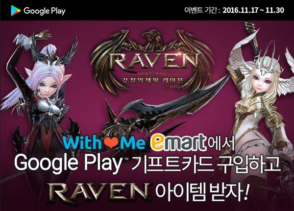 ...이벤트 아이템 쿠폰은 게임에서 1계정당 기프트 카드 상품별 3회까지 지급되며, 안드로이드 기기에서만 사용 가능하다. 넷마블은 “이번 프로모션에 참여해 신용카드 없이도 편리하게 구글플레이 앱·아이템 등을 결제할 수 있는 구글플레이 기프트 카드도 구입하고 게임 아이템도 덤으로 얻으시길