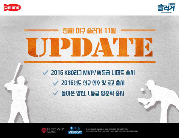 ...또, 최고의 활약을 펼치며 올해 최고의 선수(MVP)로 선정된 두산 베어스 더스틴 니퍼트 선수가 W등급으로 출시됐다. 여기에 그간 이용자들의 요청이 가장 많았던 양준혁 선수도 레전드 선수로 새롭게 추가됨에 따라 이용자들의 큰 호응이 예상된다. 그 외에도 정의윤, 박정권(SK와이번