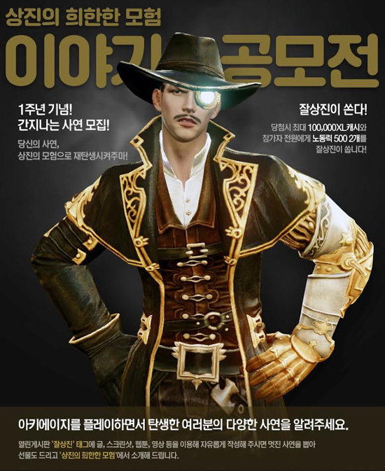 ... ‘잘상진의 모험’ 연재 1주년을 맞아 이번 이야기 공모전을 통해 유저들이 ‘아키에이지’를 플레이하며 경험한 사연을 받아 ‘잘상진의 모험’에 소개할 예정이다. 이야기 공모전 참가자 전원에게는 노동력 500 아이템 2개를, 1등에게는 XL캐시 10만원, 2, 3등 2명에게는 각각 5