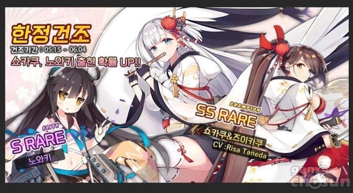 ... 한정건조를 통해 쇼카쿠, 즈이카쿠, 노와키, 휴가, 이세를 획득할 수 있으며, 그 중 쇼카쿠와 노와키는 한정건조를 통해 획득할 수 있는 확률이 특별 상승한다. 유저들은 이번 이벤트 스테이지를 통해 전용 아이템을 수집해 신규 캐릭터 '즈이카쿠' 및 다양한 아이템으로 교환할 수 있다