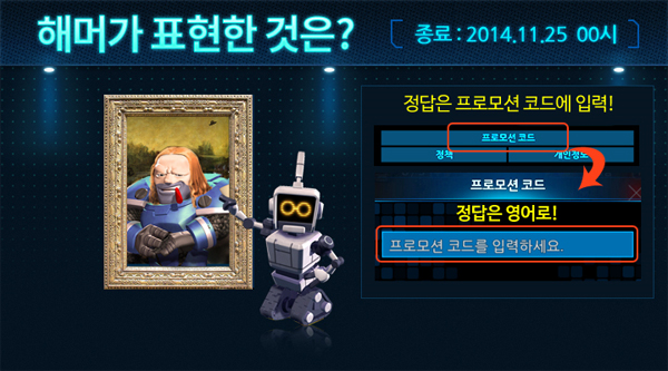 ... 게임에 접속하면 해머가 유명한 작품이나 캐릭터 흉내를 내고 있는 이미지가 등장하고, 이용자들은 이를 보고 48시간 안에 정답을 영문으로 입력하면 된다. 이미지는 누구나 쉽게 알아볼 수 있으며, 정답을 맞힌 이용자에게는 게임 내 자원인 플라즈마와 골드가 푸짐하게 제공된다.