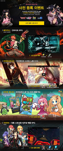 ... 이번 사전 등록은 세시소프트에서 년내 출시 예정인 모바일게임 4종의 사전 등록을 한번에 가능하도록 제작되어 게임별로 사전 등록하는 번거로움이 없이 다양한 장르의 게임의 혜택을 예약할 수 있게 되었다. 사전 등록 이벤트는 금일부터 게임의 출시 전까지 이벤트 페이지를 통해서 진