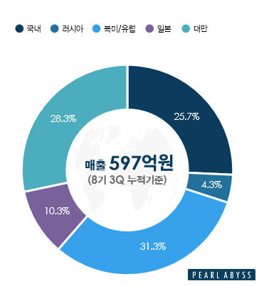 ... 누적 가입자수는 765만 이상이고 누적 판매액은 3,400억 원을 돌파했다. 전체 매출의 75% 이상이 해외에서 발생한 매출이다. 지역별 월별 매출액 추이를 살펴보면 북미·유럽이 31