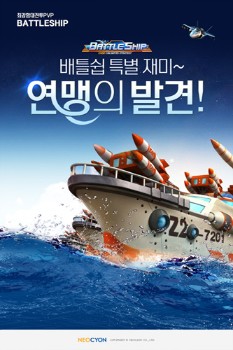 ... 이와 함께 오는 11월 22일 00시부터 24일 24시까지 3일간 월드 보스의 출현시간이 70% 감소하며, 19일 20시부터 22시까지 신비 로또가 오픈 된다. ‘배틀쉽’ 이벤트 에 대한 자세한 내용과 이벤트 신청은 배틀쉽 공식 카페와 배틀쉽 공식 페이스북에서 확인할 수