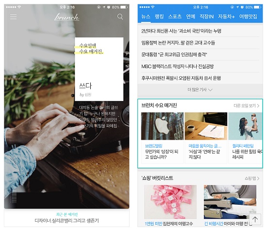 ...브런치 위클리 매거진 연재 글은 매일 다음앱ㆍ브런치 첫 화면에 노출된다. 브런치 이용자뿐 아니라 다음 이용자도 브런치의 다양하고 풍부한 글과 작가를 만나볼 수 있다. 브런치는 지난 10일부터 위클리 매거진 참여 작가 공개 모집을 시작하고 참여 작가를 위한 지원 프로그램을 공개했다