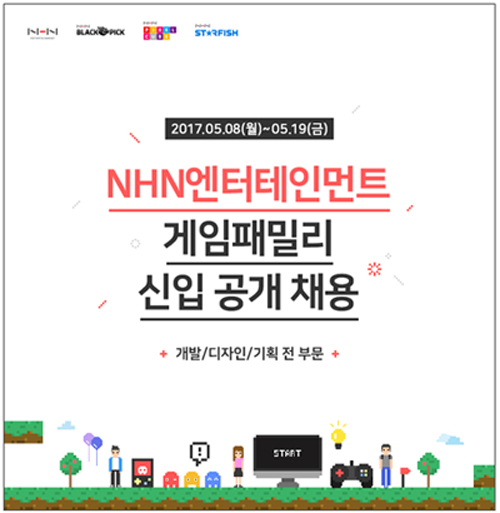... 이번 게임직군 신입사원 채용에는 NHN엔터테인먼트와 개발 자회사인 NHN픽셀큐브, NHN블랙픽 그리고 NHN스타피쉬가 참가했으며, 최종적으로 입사하게 되는 법인 및 부서는 본인 의사 및 면접 전형 결과에 따라 최종 확정된다. 전형절차는 먼저 19일까지 NHN엔터테인먼