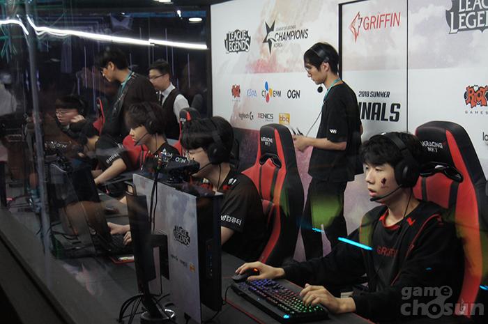 ... 고동빈(올라프) 선수와 소경호(초가스) 선수가 빠르게 최성원(제이스)를 잡아냈을 뿐만 아니라 이승용 선수까지 잡아내 분위기를 가져왔다. 이에 맞서 이승용 선수의 활약으로 드리곤을 잡아낸 그리핀은 상대 바텀 듀오를 기습했지만 조세형 선수의 세이브로 실패했다. 라인전이 이어지는 가