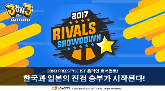 ...이번 '라이벌스 쇼다운' 토너먼트 참가자에게는 게임 내에서 사용가능 한 아이템, 인게임 머니 외에도 '3on3프리스타일'의 로고가 새겨진 후드집업과 스냅백 등을 보상으로 지급한다. 현재 조이시티는 지난 11월부터 한국 외 일본, 유럽, 북미에 '3on3프리스타일' 글로벌 서비스 중