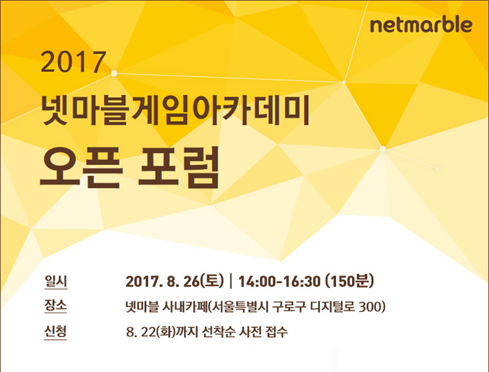 ...해당 오픈포럼은 넷마블 사옥에서 진행되며 오는 8월 26일 첫 강의를 시작으로 매월 마지막 주 토요일 1회씩, 총 5회 진행될 예정이다. 이나영 넷마블 CSR팀 이나영 팀장은 "게임 업계와 직무에 대한 사회적 관심은 늘어났지만 관련된 지식과 정보를 공유하는 자리는 부족한 실정이다"