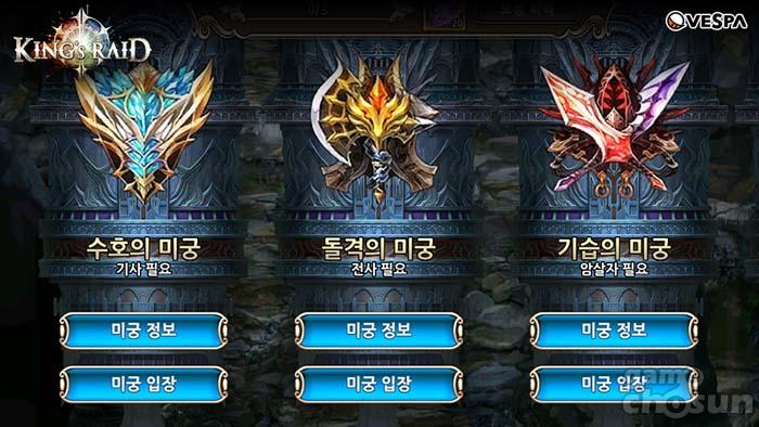 ... 또한, 지하미궁 각 층에는 전투 조건이 있으며, 해당 층의 수호자와 동일한 클래스의 영웅을 일정 수 보유해야 한다. 미궁 돌파 시에는 '기억의 조각'이라는 특별 아이템을 획득하게 되며, 이를 일정 수량 모으면 랜덤 전용 보물 소환권으로 교환 할 수 있다. 더불어 '킹스레이드'의