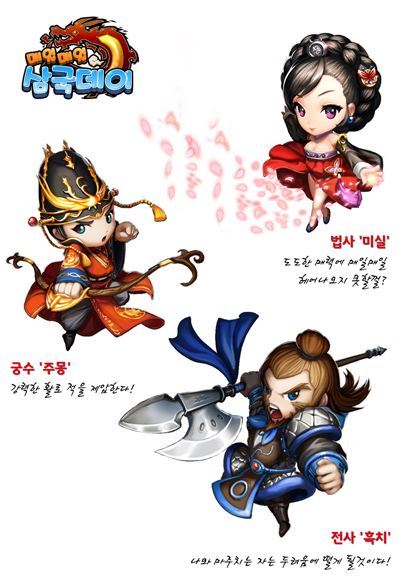 ... 먼저 곱게 땋아 올린 가체와 기품 넘치는 한복 자태로 동양의 아름다움을 뽐내는 미실은 도도하고 섹시한 매력을 가진 법사 캐릭터로, 강력한 마법공격이 특징이며, 화려한 복장과 날카로운 눈빛을 가진 궁수 '주몽'은 빠른 이동속도와 공격속도가 돋보이는 민첩형 캐릭터다. 마지막으로,