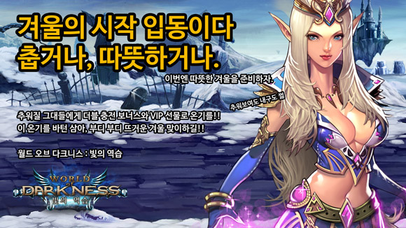 ... 정호영 레쿠코리아 대표는 "오랫동안 월드 오브 다크니스를 꾸준히 사랑해주시는 유저분들께 조금이나마 보답하기 위해 소소한 이벤트르 준비했다"며 "급격하게 떨어진 기온에 건강 유의하시기 바라며 월드오브다크니스와 함께 훈훈한 입동을 맞이하시길 바란다"고 전했다. [이동수 기자