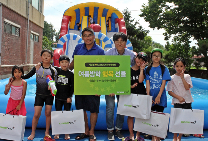 ... 여름방학 기간 동안 아이들이 시원하게 물놀이를 즐기면서 무더위를 탈출할 수 있도록 해 주자는 취지다. 더불어 쿨 방석, 모기 퇴치제, 물총, 비치볼, 미니 선풍기 등 각종 '여름 선물 세트'도 함께 전달하고 선생님들, 아이들과 물놀이를 하며 의미있는 시간을 가졌다. 행복나눔지역아