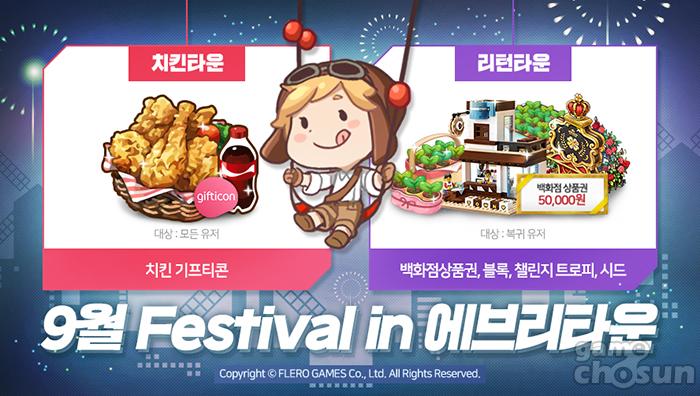 ...플레로게임즈는 ‘에브리타운’ 복귀를 독려하는 이벤트 ‘9월 페스티벌’을 4일부터 10월 3일까지 약 한달간 실시한다. 이벤트 기간 중 최근 6개월 이상 방문하지 않은 50레벨 이상의 이용자가 게임에 접속하면, 아이템 ‘챌린지 트로피’와 ‘100시드’를 지급하고, 추첨을 통해 12