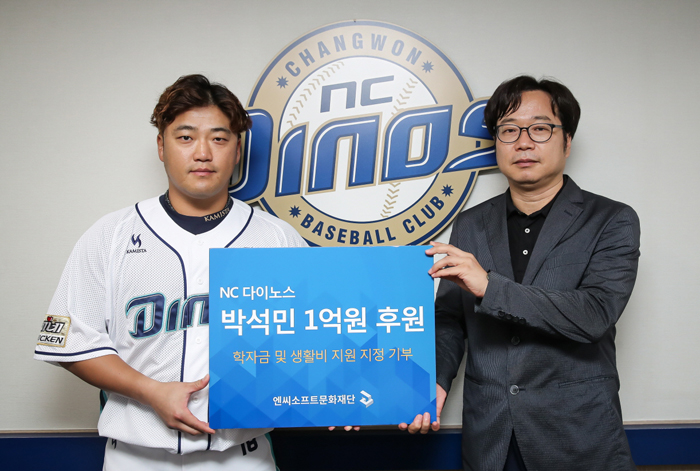 ... 엔씨소프트문화재단은 NC 다이노스의 모기업 엔씨소프트가 야구단과는 별개로 체계적인 사회공헌활동을 위해 세운 비영리•공익 재단이다. 박석민 선수는23일 오후 다섯 아이와 어머니를 창원 마산야구장으로 초대해 이야기를 나누고 자신의 사인이 들어간 야구공과 유니폼 등을 선물했다