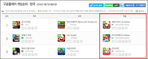 ...gevolution. co. kr/) 이에 <게임조선>에서는 국내 모바일게임 시장과 해외 주요 나라의 모바일게임 순위를 매일 알아보는 시간을 가져봤다