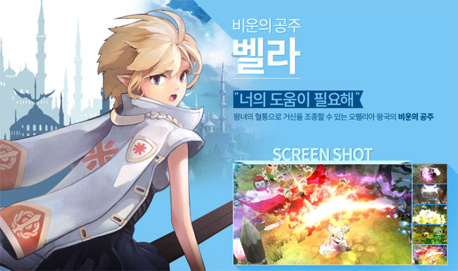 ... 이용자는 각각의 개성을 지닌 캐릭터와 거신을 활용해 PvP 콘텐츠인 거신 대전과 4인이 힘을 합쳐 보스를 물리치는 실시간 협동 레이드 등 다양한 방법으로 전투를 즐길 수 있다. 현재 공개된 캐릭터와 거신은 오펠리아 왕국의 비운의 공주 '벨라'를 비롯해 비에타, 래서, 스노