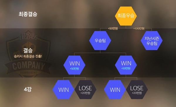 ... 같은 직장에 재직 중이며 본인 계정을 소유한 5명이 모이면 누구나 온라인으로 참가 신청이 가능하다. 신청은 아프리카TV LoL 직장인 토너먼트 공식대회 페이지에서 할 수 있다. 이번 스프링 1차 대회부터는 최종 결승전으로 직행하는 시드권이 전 대회 우승팀에 부여된다