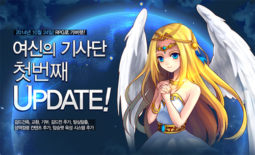 ... 추가로 여신의 기사단은 첫번째 업데이트를 기념한 3종의 이벤트를 진행하고, 폭발적인 이용자 증가에 따라 10월 25일 오전 11시 네 번째 신규 서버 가이아 서버가 오픈될 예정입니다. 10월 24일부터 11월 22일까지 공식 카페를 통하여 매일 공개되는 쿠폰을 입력시 체력약, 골