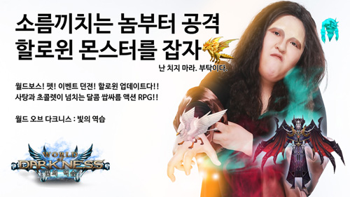 ... 월드오브다크니스는 이와 함께 괴물과 박쥐, 마녀, 해골, 올빼미, 구울 등으로 구성된 몬스터들의 침입으로부터 마을을 수호하는 형태의 할로윈 전용 이벤트 던전을 추가한다. 이 던전은 20%의 확률로 신규 아이템인 사탕과 초콜릿을 얻을 수 있으며 매일 0시 초기화되고 100 수정을