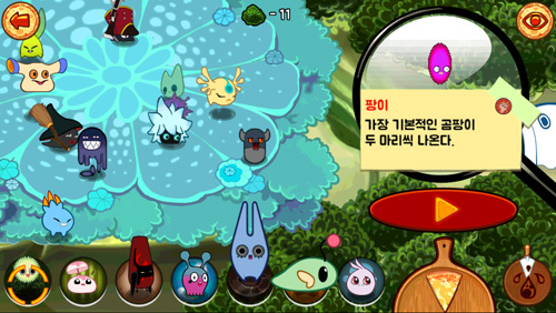 ... 곰팡이 캐릭터 들을 화면을 누르고 있으면 생성하고 터치하면 공격을 하는 등 누구나 쉽게 조작할 수 있도록 구성됬다. 이렇듯 자그마한 곰팡이와 방부제들 200마리가 피자위에서 서로 얽혀 싸우는 모습은 아이러니하게도 웅장한 규모를 자랑하며 게임유저들의 시선을 사로잡고 있다.