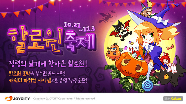 ... 조이시티는 할로윈 축제 기간 동안 게임 플레이 횟수에 따라 ‘소환 티켓’ 또는 ‘정령석’을 지급하는 이벤트를 진행하고, ‘SS마법석 선택 상자’가 포함된 할로윈 한정 상품을 오는 3일까지 판매한다. 한편‘정령의 날개 for Kakao’는 구글플레이와 애플 앱스토어, 네이버