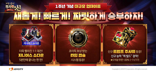 ...이 밖에도 도시 정복 시 건설 단계를 1단계 올려주는 신규 주사위 ‘트럼프’를 추가하고, 일정 시간 경과 후 다양한 보상을 얻을 수 있는 ‘타임캡슐’ 시스템을 선보였다. [오우진 기자 evergreen@chosun. com] [gamechosun