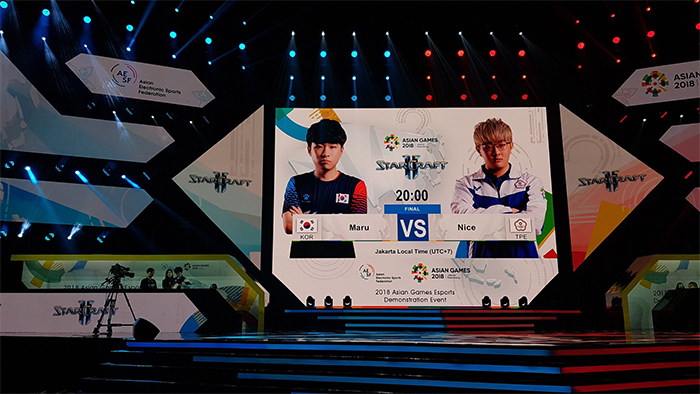 ... 나이스 선수는 상대의 전략에 맞서 분투했지만 한 세트도 승리를 가져오지 못했다. 조성주 선수는 아시안게임 ‘스타크래프트2’ 경기에서 전승 우승으로 금메달을 획득했다. 결승 1세트에서 조성주 선수는 11시, 나이스 선수는 5시 지역에서 경기를 시작했다