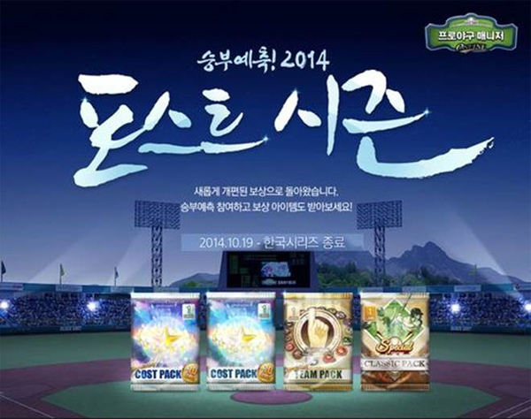 ... 선택한 구단의 경기 결과에 대해 구체적인 내용까지 예측해 성공하면 추가로 포인트를 지급한다. 해당 포인트는 한국시리즈 종료 후 ’10 코스트 스페셜 팩’ 등 푸짐한 보상 아이템으로 교환할 수 있다. 이벤트는 포스트시즌과 한국시리즈의 매 경기 시작 전까지 참여할 수 있으며,