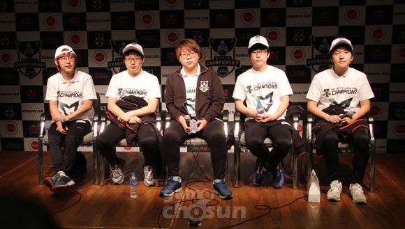 ... '루퍼' 장형석 "정말 정말 기쁘다" '댄디' 최인규 "상상도 할 수 없는 무대에서 게임을 할 수 있던 것 자체가 영광이다. 응원해주신 분들 정말 감사하고 지금 정말 기쁘다. " '폰' 허원석 "처음 겪어보는 우승인데 정말 기쁘다" '임프' 구승빈 "팀원들 덕분에 우