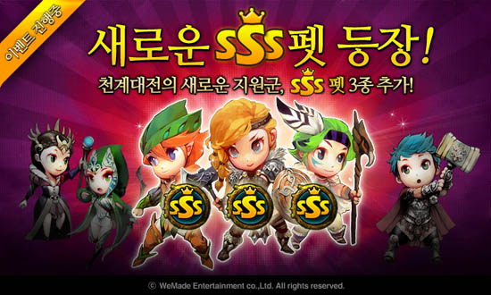 ... 회사 측은 이번 업데이트를 기념해 17일 1일간 펫 소환 확률을 2배 상승시키는 이벤트를 진행하고 오는 22일까지 신규 SSS등급 펫을 획득하면 캐시아이템인 루비 500개를 제공한다. [이관우 기자 temz@chosun. com] [gamechosun