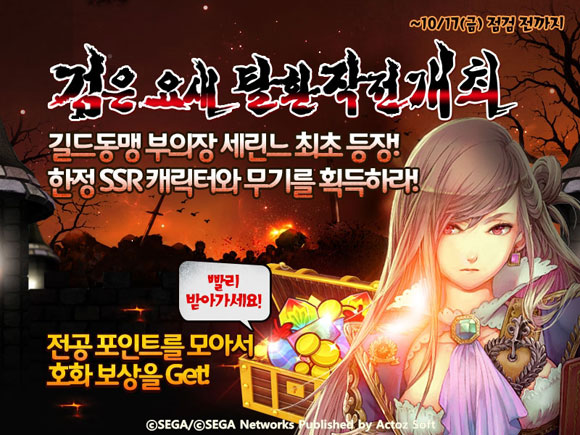 ... 또한, 이벤트 기간 동안에는 ‘전공포인트’를 기준으로 랭킹 보상을 제공하며, 상위 랭킹을 기록한 유저들에겐 최초로 공개되는 SSR등급 캐릭터 ‘길드동맹 부의장 세린느’를 추가로 지급한다. 이와 함께, 같은 기간 동안 ‘검은요새 탈환작전’을 지원하기 위한 ‘구원부대 페스티