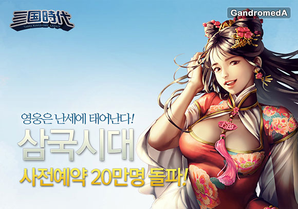... 간드로메다 강희웅 사업본부장은 "삼국시대의 사전예약에 뜨거운 호응을 보내주시어 감사의 마음을 전하고 싶다. 폭발적 성원에 보답하기 위해 30만 명을 돌파하면 추가 선물 지급을 결정했으며, 무엇보다 높은 기대감에 보답할 수 있도록, 안정적이고 재미있게 즐길 수 있는 환경 마련